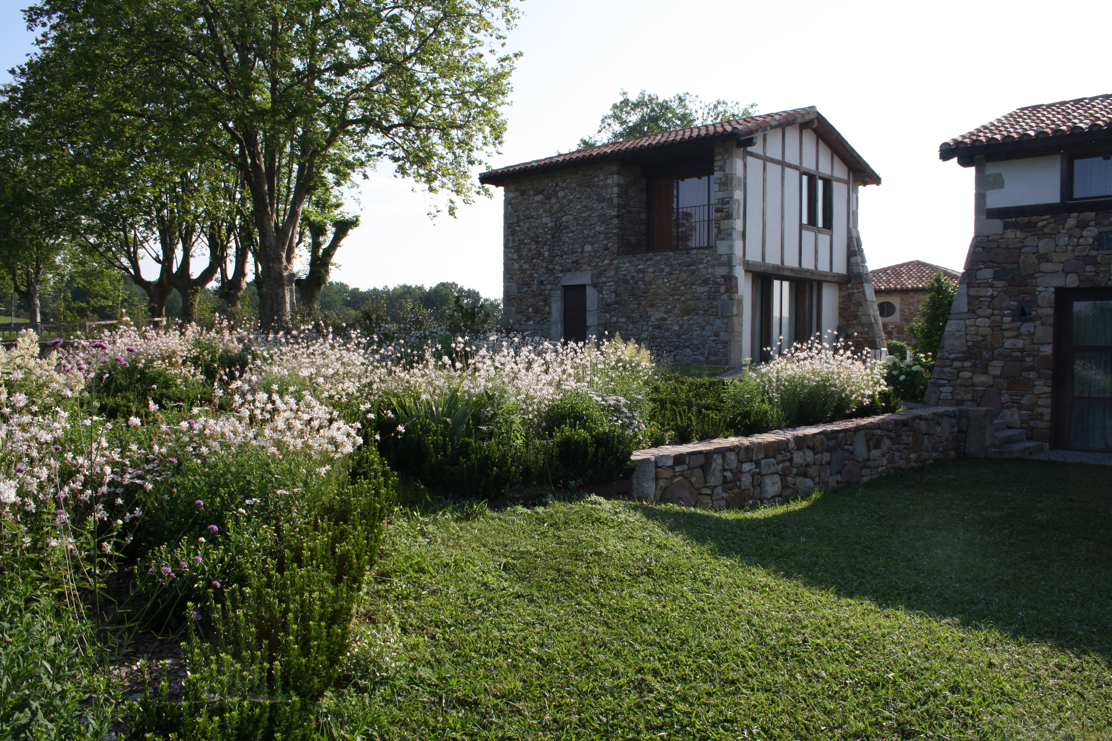 Les allées ont été redessinées pour générer jeu de caché/découvert du tableau final d’une beauté à couper le souffle. Un parc composé de plusieurs centaines d’arbres choisis pour leurs couleurs automnales sur un terrain entièrement défriché et remodelé, de grands aplats de plus de 1000 vivaces et arbustes violets et un sous-bois de pins planté de plus de 10 000 bruyères sont quelques-uns des éléments qui mènent à un jardin volontairement très épuré pour ne pas rentrer en concurrence avec les montagnes toutes proches.